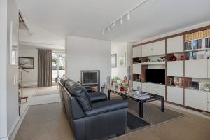 - Au 3ᵉ étage : Hall d’entrée avec placards intégrés et vidéophone, cuisine super équipée, agréable séjour avec feu ouvert, salle à manger avec accès direct à la terrasse arrière, ainsi qu’un escalier hélicoïdal en bois menant à l’étage supérieur.